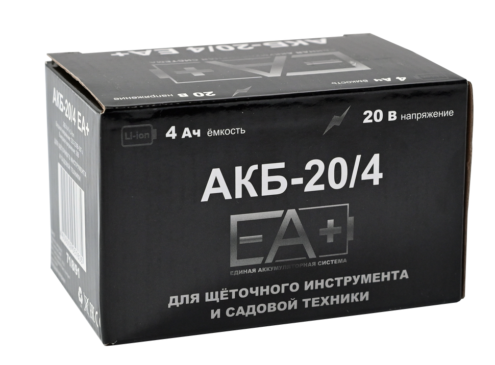 Аккумулятор АКБ-20/4 EA+ рекомендован для щеточного инструмента и садовой техники.