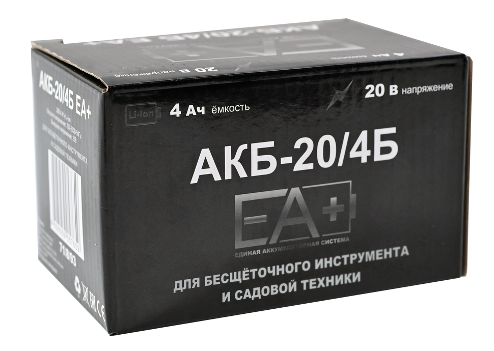 Аккумулятор АКБ-20/4Б EA+ рекомендован для бесщеточного инструмента и садовой техники (повышенная токоотдача).