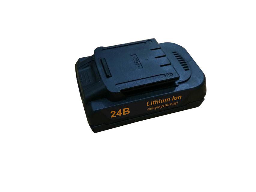 Литий-ионный аккумулятор Вихрь АКБ24Л1 KPV для шуруповерта Вихрь ДА-24Л-2К и ДА-24Л-2К-У типа слайдер. Легко и быстро устанавливается на шуруповерт с помощью кнопки отсоединения. Напряжение аккумулятора - 24 В, емкость составляет 2 А*ч.