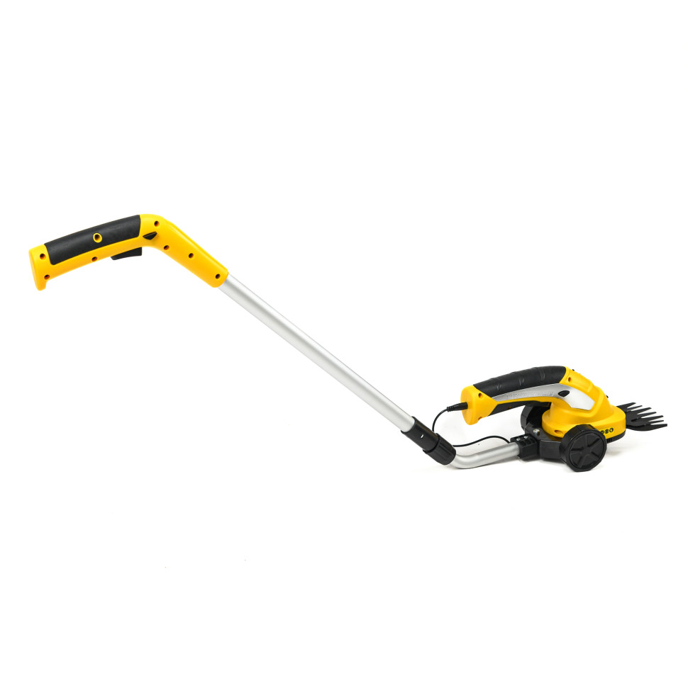 В конструкции данной модели предусмотрена телескопическая штанга и колесики. С удлиненной ручкой удобнее подравнивать газон – не приходится нагибаться.