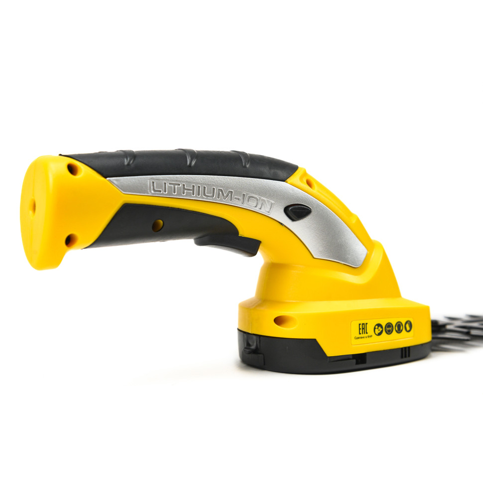 Huter GET-8LS — триммер-кусторез, работающий от литиевого аккумулятора емкостью 1,5 Ач. С помощью аккумуляторного кустореза вы сможете легко формировать кусты на дачном участке. Устройство способно справляться с ветками толщиной до 8 мм. Частота вращения двигателя составляет 1100 об/мин. Эта характеристика триммера-кустореза напрямую влияет на то, насколько легко он будет справляться с травой и ветками.