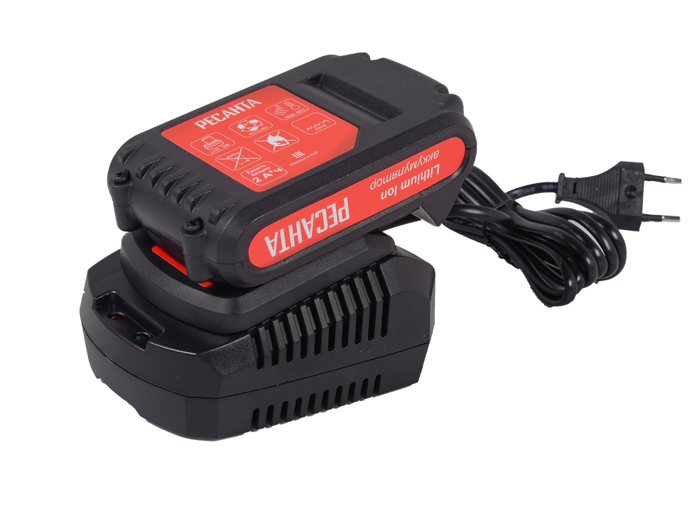 - Напряжение литий-ионного аккумулятора составляет 20 В, в емкость – 2 А*ч.