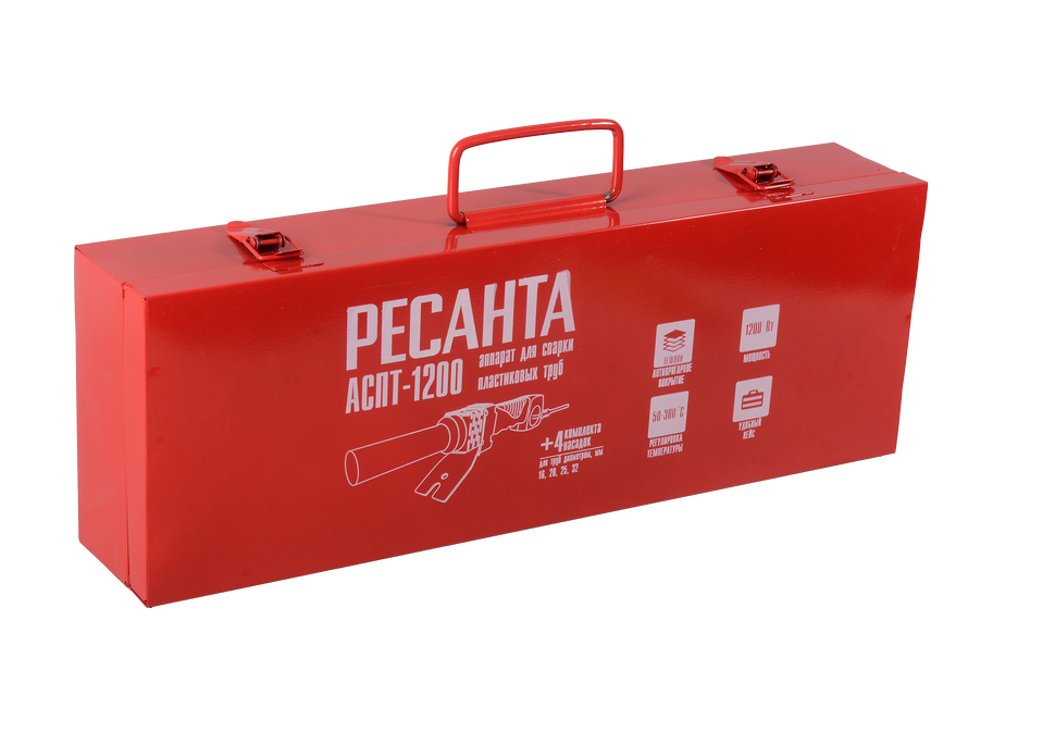 Аппарат для сварки пластиковых труб Ресанта АСПТ-1200 – это инструмент для соединения полипропиленовых труб, который можно применять в ремонте и строительстве. Аппарат используют для стандартного соединения полипропиленовой трубы или сваривания ее в раструб. Вес агрегата, составляющий 2,6 кг, позволяет использовать его для выполнения горизонтальной сварки внизу или на высоте. Рабочая температура до 300 градусов позволяет обеспечить эффективность плавки полипропилена и герметичность всех типов соединений.