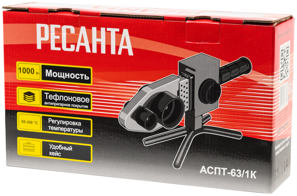 Ресанта АСПТ-63/1К – модель сварочного аппарата для пластиковых труб, оснащенная терморегулятором, 6 насадками и кейсом. Она поможет выполнить муфтовую сварку полипропиленовых изделий.