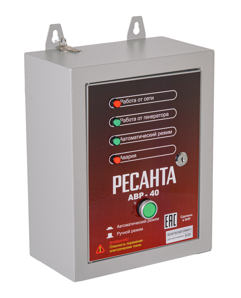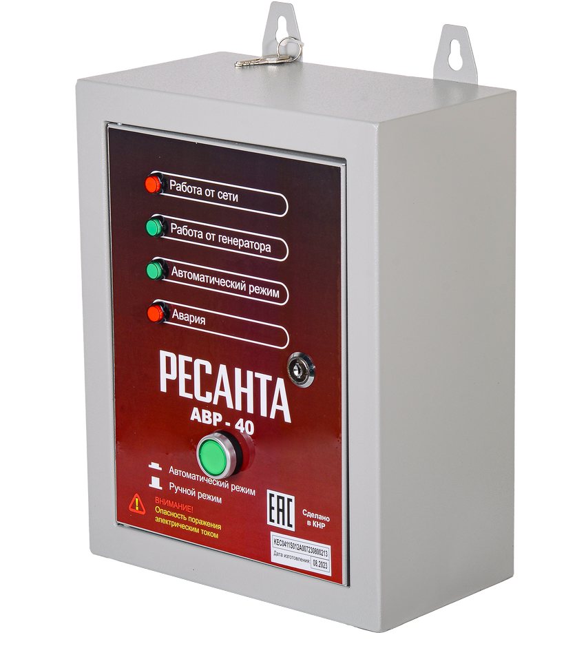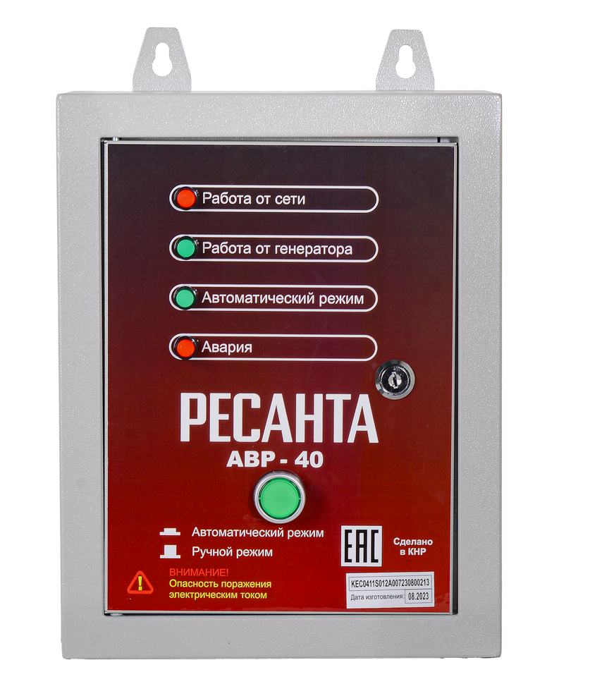 Панель автоматического ввода резерва для электрогенераторов АВР-40 Ресанта поддерживает непрерывный режим работы электрооборудования. Осуществляет запуск генератора при отключении электроэнергии в сети, а при появлении электричества отключает его. АВР осуществляет постоянный мониторинг напряжения во внешней сети и запускает генератор при достижении показателя 100 В. Работает без перебоев при температуре окружающей среды от -20° до -60° C.