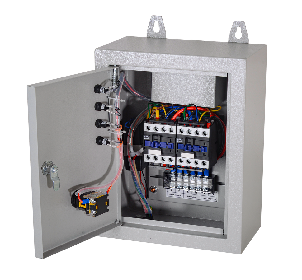 Панель автоматического ввода резерва для бензогенераторов предназначена для однофазной электросети. Максимальная мощность подключаемой нагрузки составляет 10 кВт. Система автозапуска осуществляет до 3 попыток запуска станции. Максимальная задержка запуска составляет 2-3 с. Этого достаточно для полного прогрева двигателя. Время до подключения нагрузки после запуска не превышает 5 с. Помимо автоматического, предусмотрен ручной режим работы.