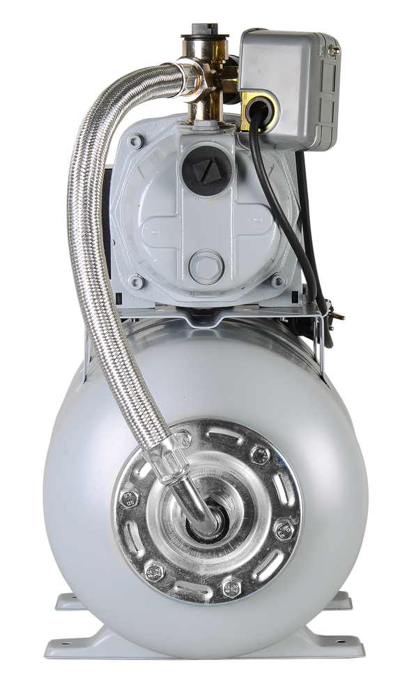 Модель оснащена гидроаккумулятором объемом 24 л. Он обеспечивает резервный запас воды, поддерживает необходимое давление в системе 1,5-3 атм и продлевает срок службы насоса. Температура транспортируемой жидкости может достигать 50° С. Максимальная глубина, с которой насос способен подавать воду, составляет 9 м. Реле защищает двигатель от сухого хода, предупреждая его выход из строя.