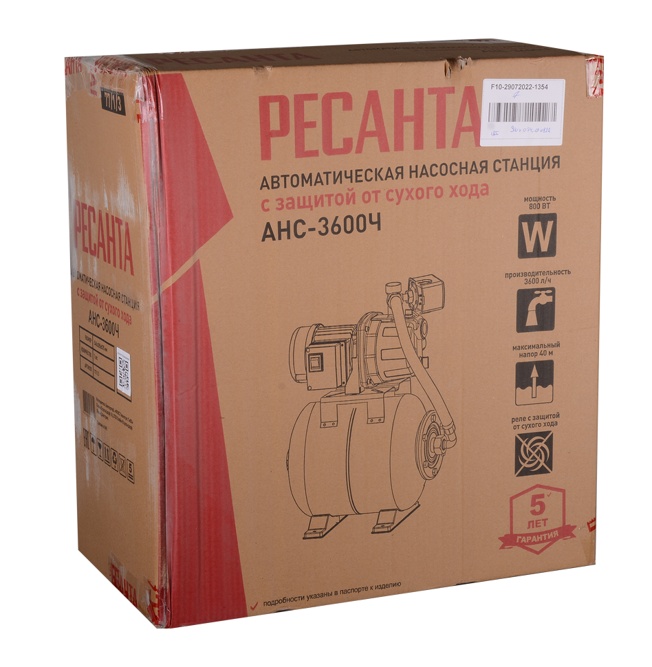 Автономная насосная станция Ресанта АНС-3600Ч обеспечивает автоматическую бесперебойную подачу воды в условиях отсутствия центрального водоснабжения. Используется для загородных домов, дачных участков, фермерских хозяйств. Однофазный асинхронный двигатель с короткозамкнутым ротором имеет мощность 800 Вт. Он отличается длительным сроком службы и обеспечивает максимальный напор на расстоянии до 40 м. При этом производительность составляет 60 л/мин.
