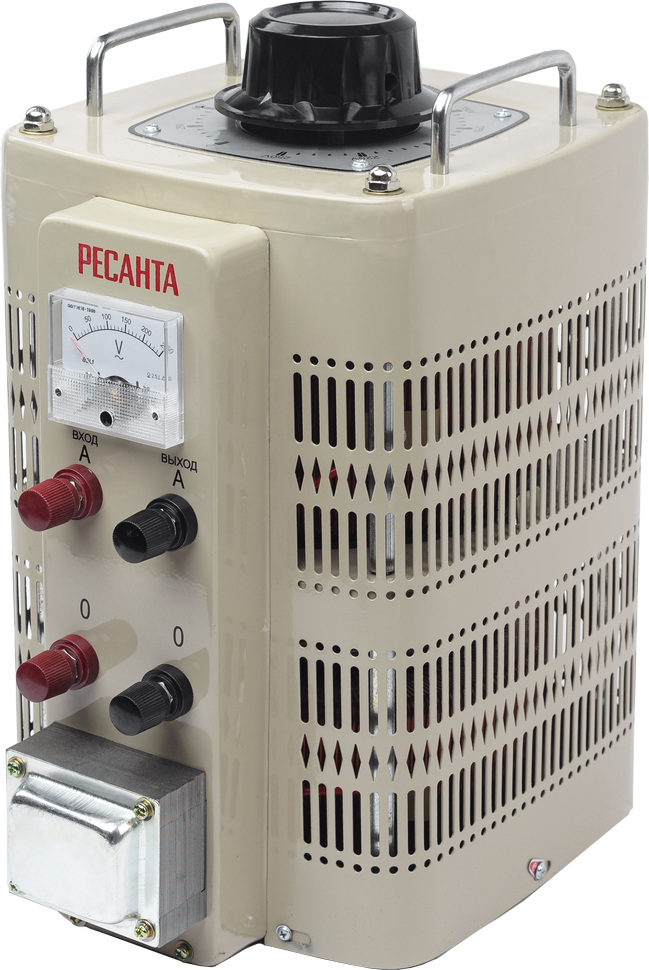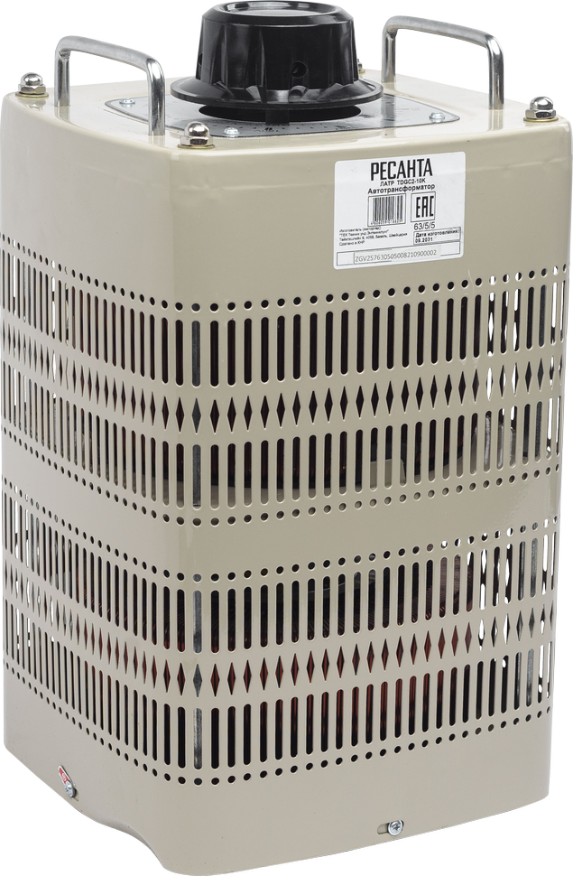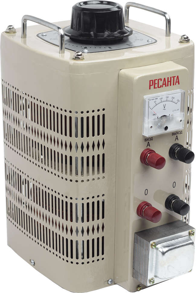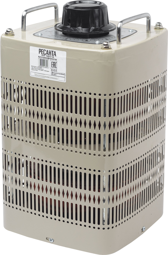 Автотрансформатор ЛАТР Ресанта ТР/10 (TDGC2-10) мощностью 10 кВт с естественным типом охлаждения и плавной регулировкой напряжения от 0 до 250 В может использоваться в качестве лабораторного трансформатора, будет полезен для наладки и проверки электрооборудования, поможет вручную отрегулировать напряжение в сети при частых отклонениях от нормы.