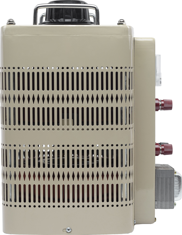 Однофазный трансформатор состоит из корпуса и расположенного в нем тороидального магнитопровода. На медной обмотке имеется открытая неизолированная дорожка, посредством которой обеспечивается контакт во время движения угольной щетки. Изменение коэффициента напряжения осуществляется путем вращения ручки регулятора, расположенного на верхней панели корпуса. Для удобства регулировки ручка оснащена шкалой поворота. Мощность устройства равна 10 кВт, данная модель является самой мощной среди автотрансформаторов. Электромагнитный узел размещен в металлическом корпусе, который защищает обмотку от загрязнений и повреждений, а также обеспечивает безопасность пользователя. Корпус оснащен вентиляционными отверстиями для естественного охлаждения механизма. На боковой части корпуса расположены контактные клеммы и шкала вольтметра для контроля показателей. Вертикальное расположение и наличие прочных ручек обеспечивает удобство транспортировки и размещения.