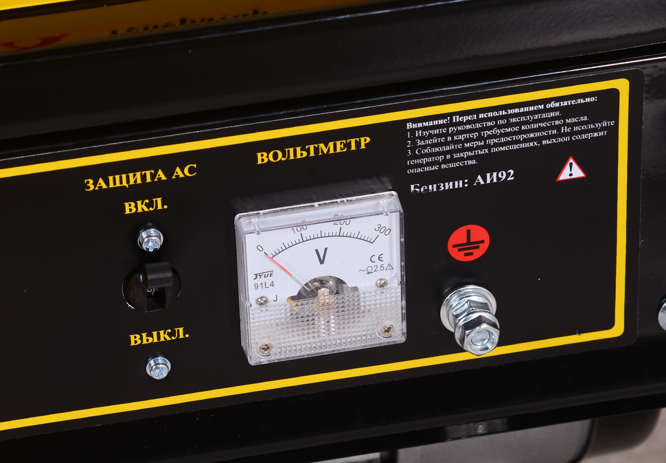 Генератор на выходе выдает напряжение 220 В, частота переменного тока составляет 50 Гц,