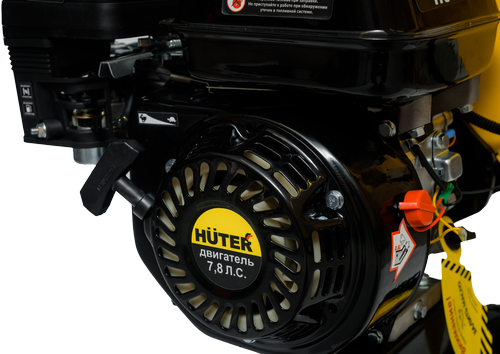 Модель садового измельчителя Huter GSH-7800 оснащена 4-тактным бензиновым двигателем с воздушным охлаждением мощностью 7.8 л.с, двумя двухсторонними ножами, выполненными из стали марки 65Г, загрузочным и разгрузочным желобами, широкой рамой с упором, телескопической рукояткой и двумя большими колёсами. Объём топливного бака составляет 3.6 л. Возможности измельчителя веток этой модели позволяют перемалывать древесину с максимальным диаметром – 50 мм (свежие ветки), 40 мм (свежее твёрдое дерево), 30 мм (сухая твёрдая древесина). Уровень шумового давления – 88 дБ. Модель получила плавный пуск, защиту от перегрузок и рассчитана на продолжительный рабочий ресурс. Вес измельчителя – 38 кг.