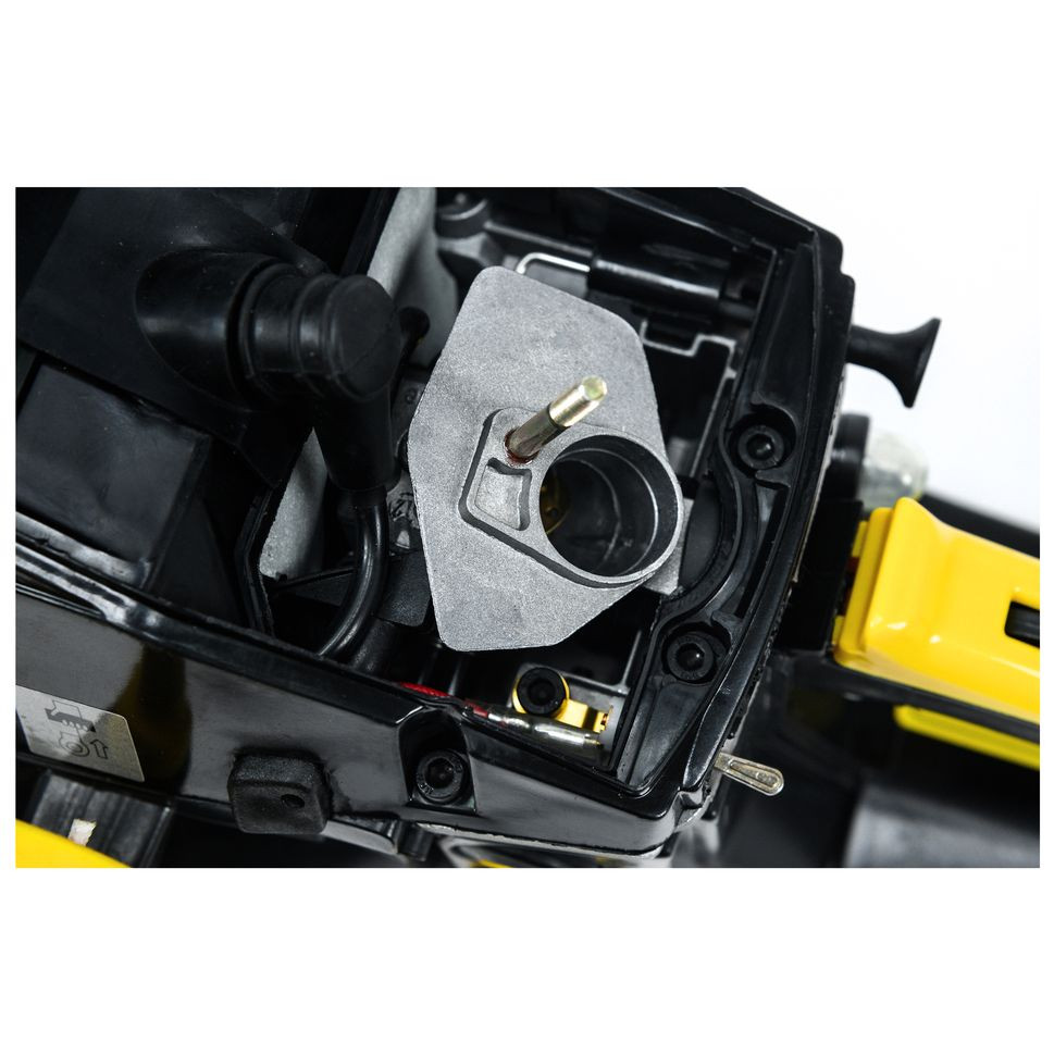 Карбюратор отличается простым регулированием, для настройки оборотов достаточно использовать отвертку. Закачка топлива в карбюратор происходит с помощью ручного топливного насоса (праймера). Улучшенный масляный насос подает специальное цепное масло, которое облегчает скольжение цепи и не дает металлическим деталям перегреваться от трения во время работы. Емкость бака смазки цепи: 260 мл. Устройство оснащено вместительным топливным баком емкостью 550 мл.