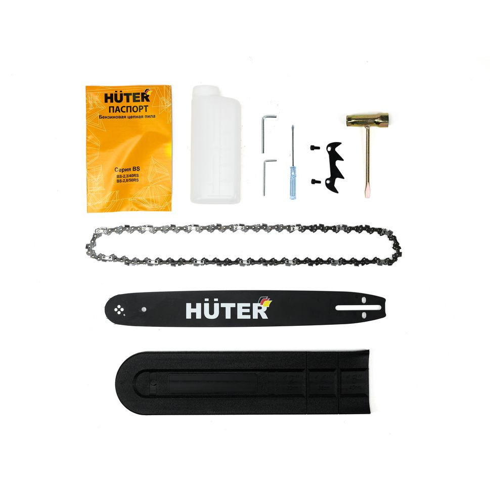 При её изготовлении основной упор делался на безопасность владельца, поэтому HUTER BS-2,3/40RS оснащена тормозом цепи, который защитит пользователя от отскока пилы. Бензопила удобна в использовании, поддерживает систему облегченного запуска «Легкий старт», заводится при минимальных усилиях. Наличие системы амортизации из трех демпфирующих втулок снижает уровень вибраций при работе двигателя.