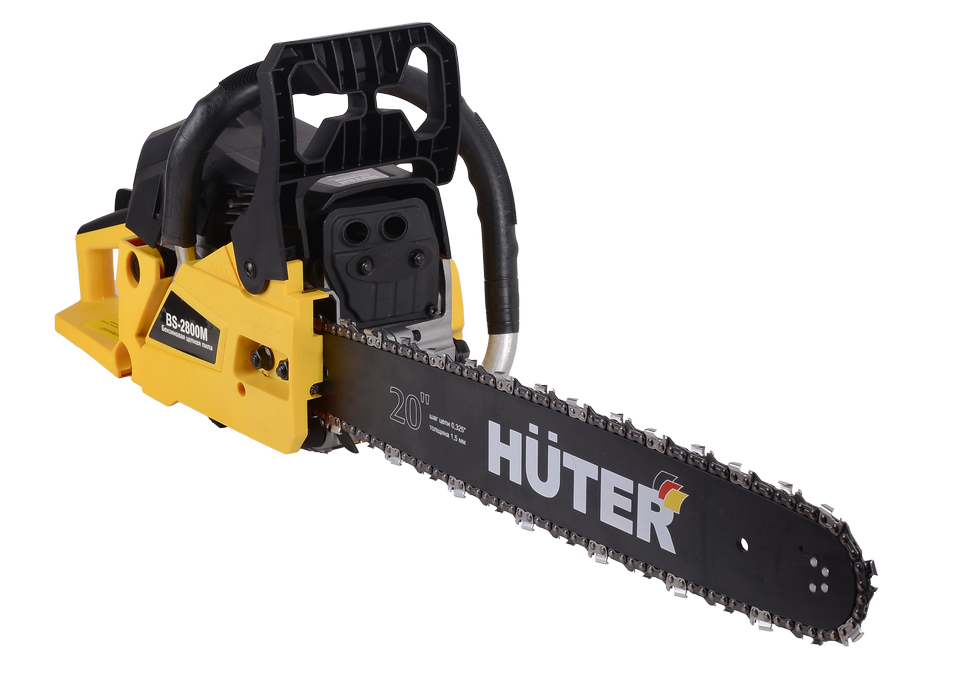 Бензопила Huter BS-2800M имеет функцию легкого старта, которая позволяет запускать двигатель, практически не ощущая рывков. Стопор курка газа предотвращает случайные нажатия, создавая автоматическое замыкание на холостых оборотах. Инерционный цепной тормоз мгновенно срабатывает при неконтролируемом отбрасывании бензопилы на оператора. Резиновые прокладки между корпусом и рукояткой сокращают вибрационную нагрузку в процессе работы.