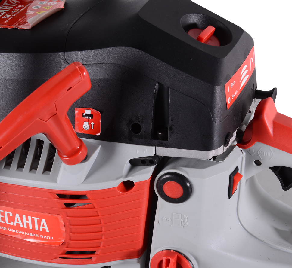 Так как топливный бак вмещает 550 мл, можно долгое время работать без перерыва на дозаправку. Объем бака для масла, которое применяется для смазывания цепи с целью улучшения ее скольжения, равен 260 мл. Бензопила данной модели имеет улучшенный масляный насос и топливный фильтр высокой степени очистки. Благодаря легкому старту, с запуском справится любой человек. Имеется ручной топливный насос, который позволяет закачать топливо в карбюратор при холодном пуске. Воздушный фильтр при необходимости можно легко снять и промыть.