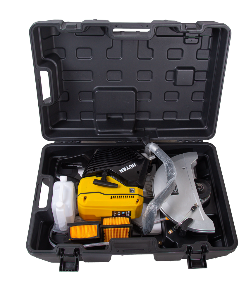 Бензорез Huter GC-7414 не привязан к источнику питания, отличается мобильностью, позволяет быстро добраться до места работы. Защитный кожух пильного диска обеспечивает безопасность работы, регулируется без использования специальных инструментов. При отключении двигателя срабатывает тормоз диска. Антивибрационная система облегчает работу оператора.