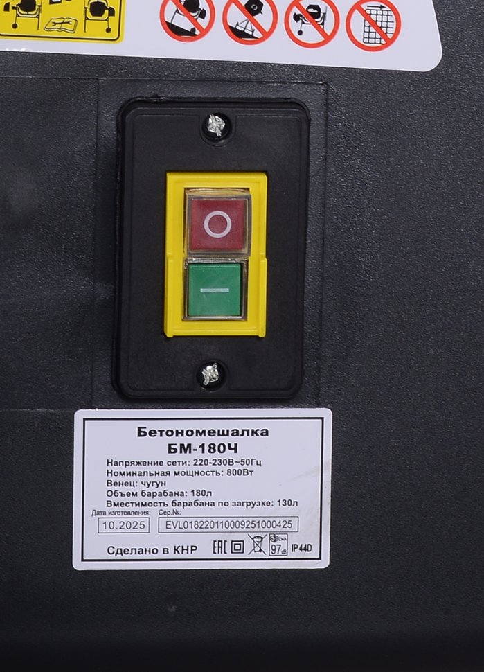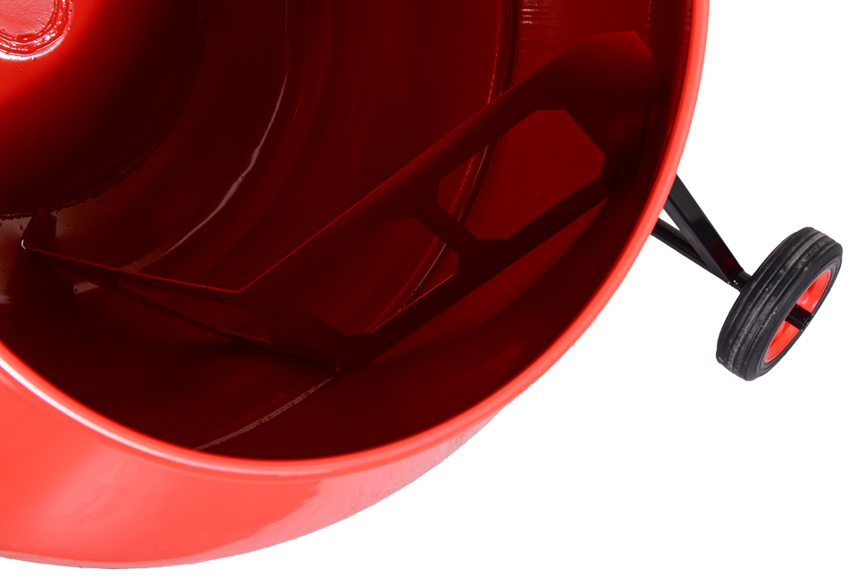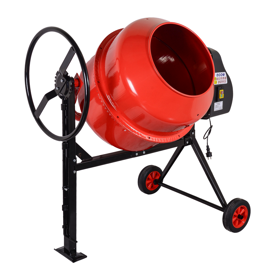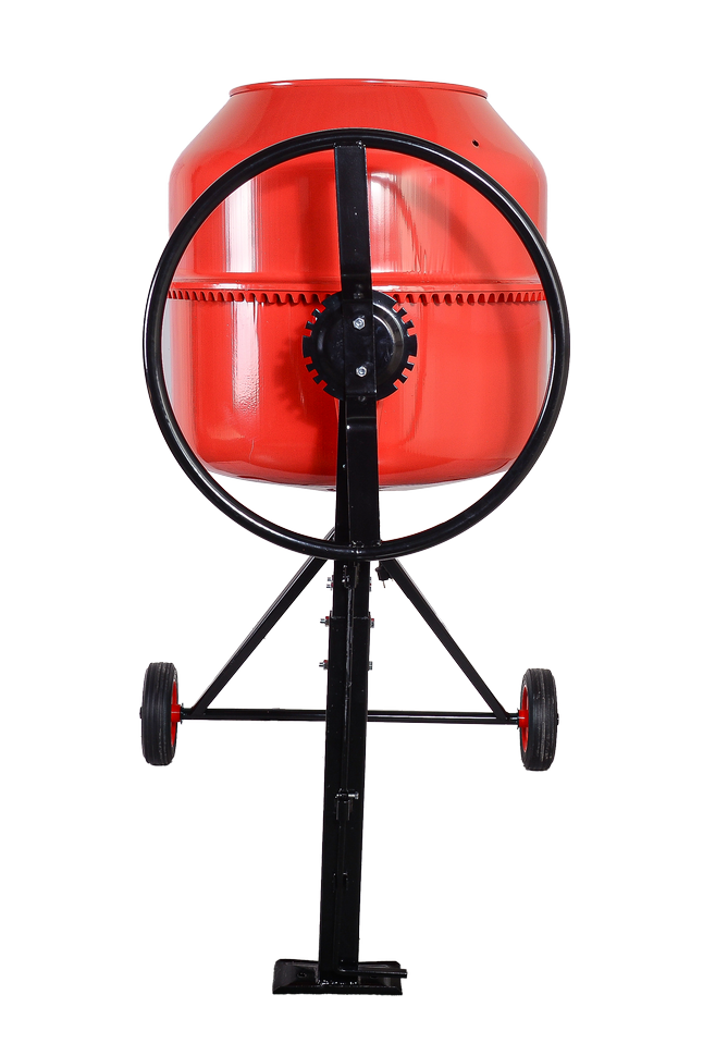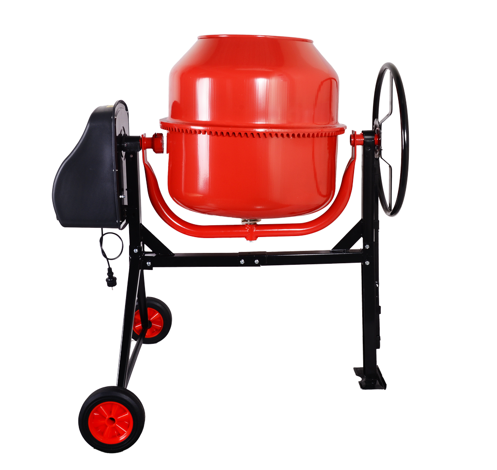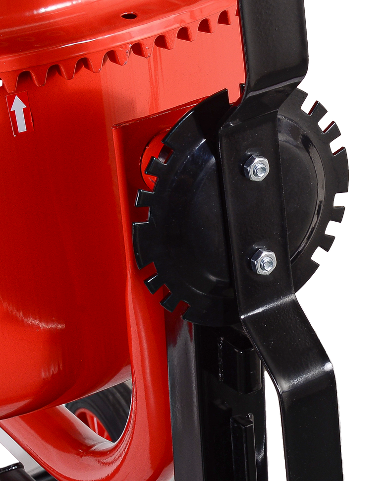 Электродвигатель мощностью 900 Вт гарантирует бесперебойную работу даже при значительных нагрузках. Большой объем барабана на 205 л позволяет готовить значительные объемы материала за короткий промежуток времени. Барабан вращается со скоростью 32 об/мин, обеспечивая равномерное смешивание компонентов. Лопасти закреплены болтовым соединением, что упрощает процесс очистки и замены деталей.