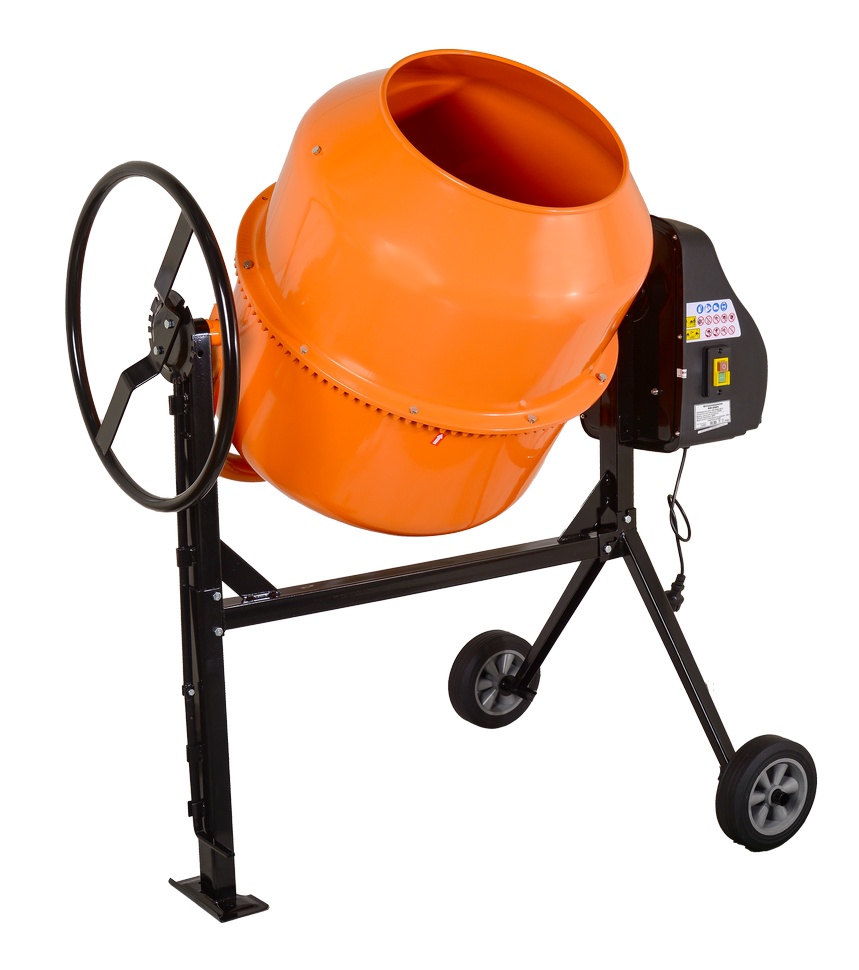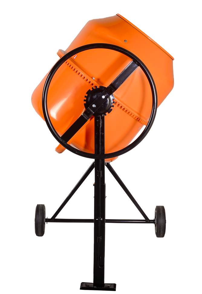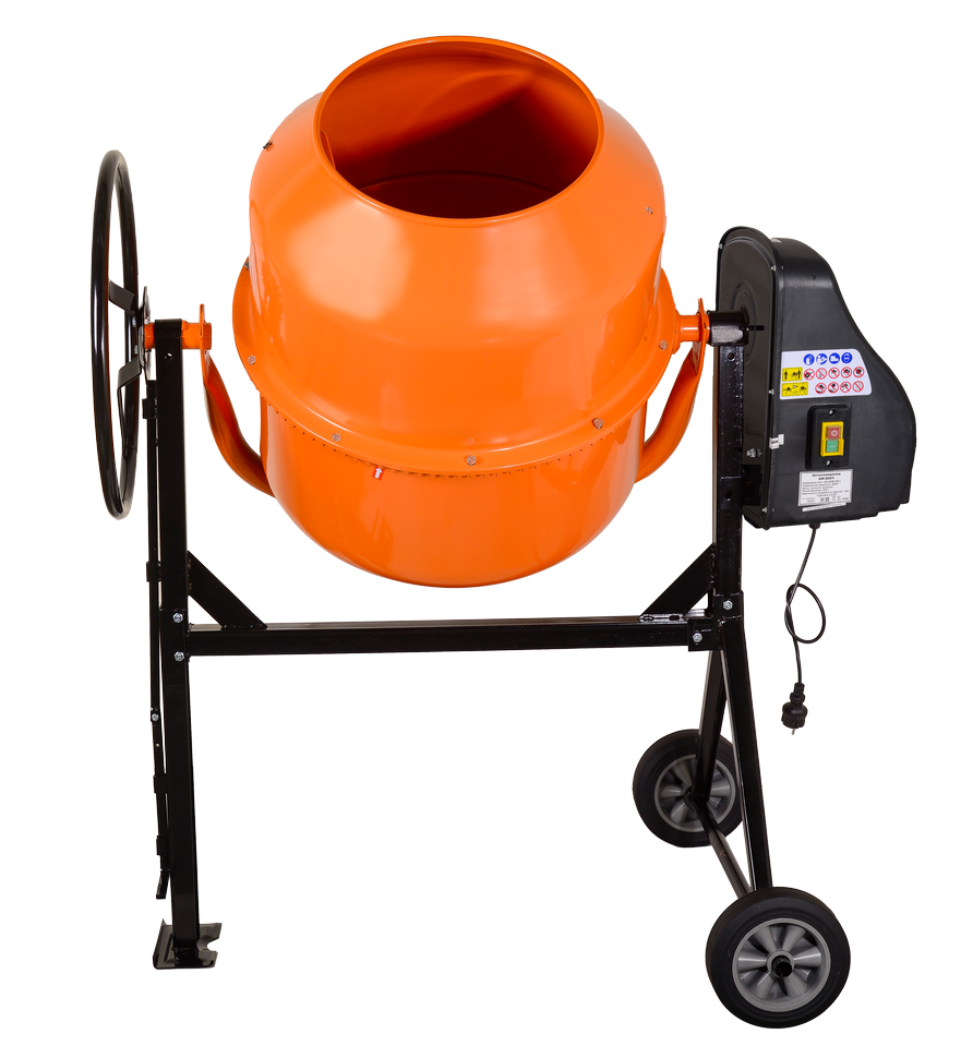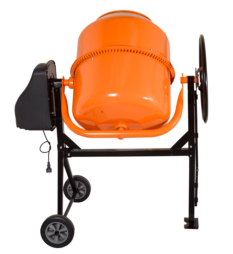 Бетономешалка выполнена из надежных материалов. Барабан изготавливается из стали толщиной более 2 мм, а его опорный подшипник при износе легко заменяется на новый. Венец отлит из чугуна. Лакокрасочное покрытие нанесено порошковым способом, оно защищает барабан и опоры от коррозии.