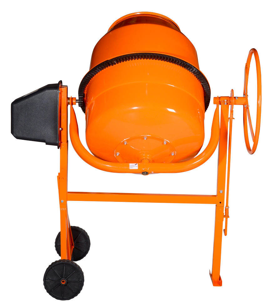 Бетономешалка оснащена барабаном объемом 230 л, что позволяет использовать ее на крупных строительных объектах. Венец крутящего механизма изготовлен из полиамида. Данный полимер отличается прочностью, малым весом, не подвержен коррозии, имеет низкий коэффициент трения. Процесс работы отличается низким уровнем шума, что позволяет использовать бетоносмеситель не только на улице, но и в помещениях.