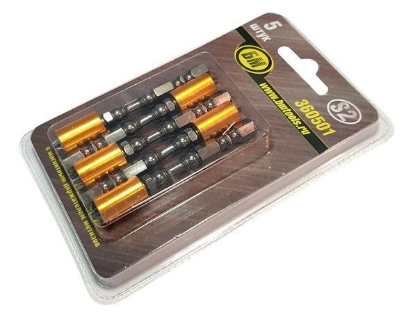Бита односторонняя с магнитным держателем PH2Х65мм S2. Комплект 5 штук БМ
