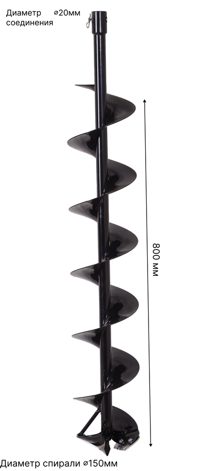 Бур Huter AW-150 - это шнек, который предназначен для бурения лунок в зимнем льду. Диаметр шнека составляет 150 мм, а длина - 80 см. Шнек имеет внутренний диаметр крепления 20 мм и подходит для большинства моделей мотобуров.