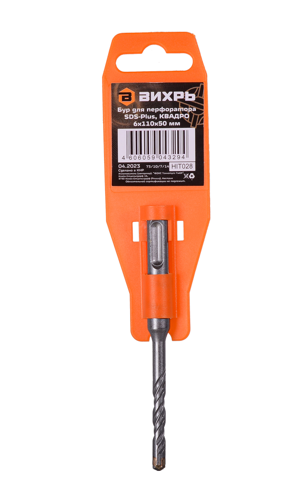 Бур Вихрь Квадро 6x110x50 предназначен для использования в перфораторах с системой крепления SDS-Plus. Сверло имеет общую длину 110 мм и рабочую 50 мм, диаметр 6 мм.