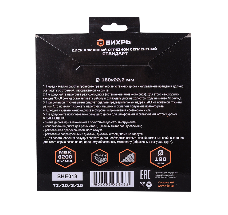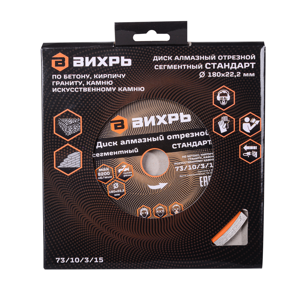 Алмазный отрезной диск Вихрь Стандарт сегментный 180 x 22.2 мм - это универсальный отрезной диск для угловых шлифовальных машин, который предназначен для сухой резки различных материалов, таких как гранит, бетон, кирпич и камень. Благодаря прорезям в сегментах диска, процесс резки осуществляется с эффективным выбросом отходов, что позволяет снизить нагрузку на инструмент и повысить точность работы.