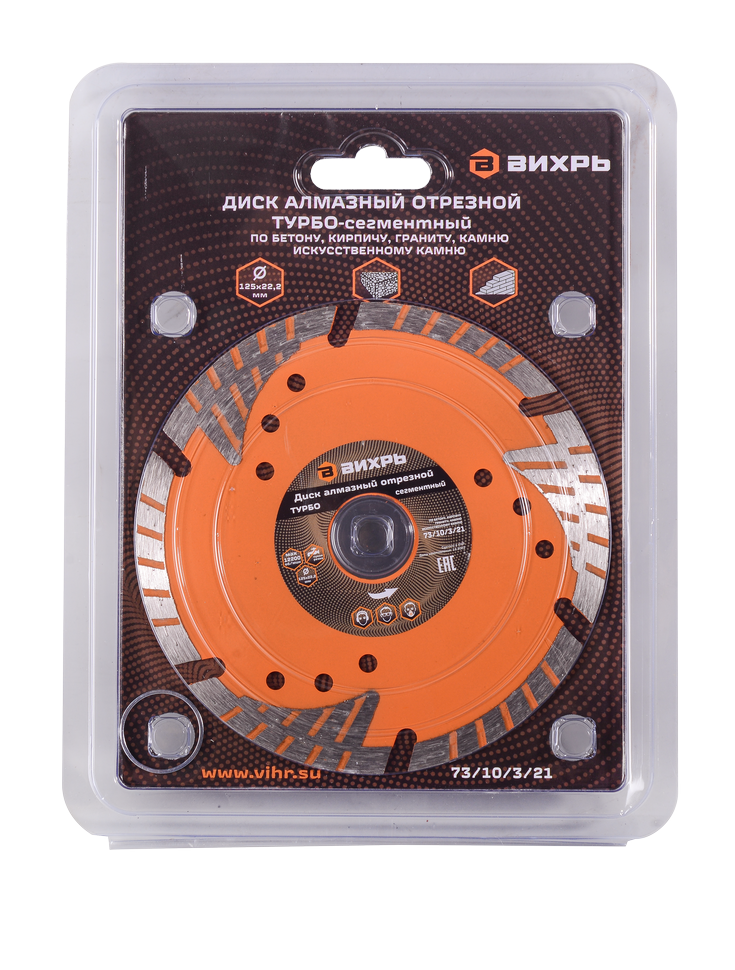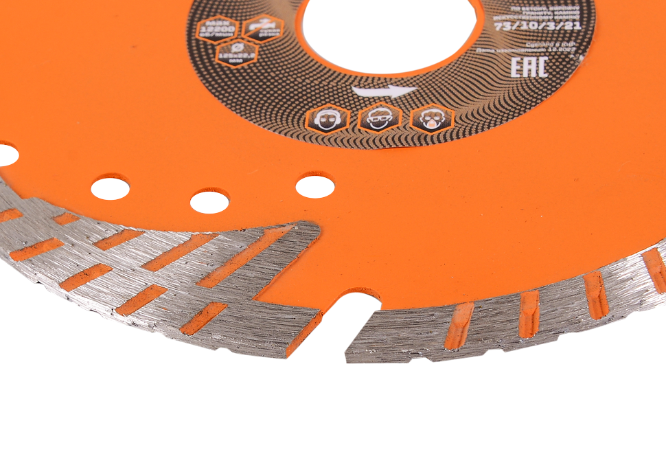 Диск оснащен специальными зубцами, которые позволяют ему легко прорезать любой материал без особых усилий и обеспечивать быстрый и чистый рез. При резке не понадобится использовать воду или другие жидкости. Турбированная форма диска обеспечивает эффективное охлаждение при работе. Специальные сектора защищают режущий слой от бокового износа.
