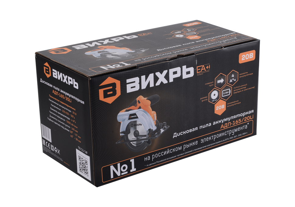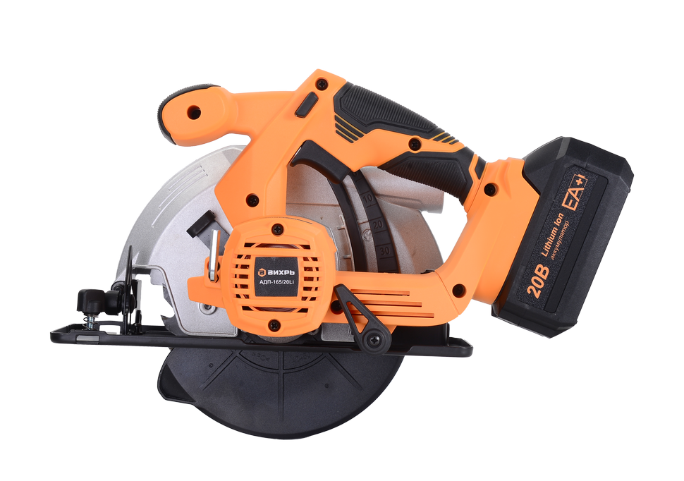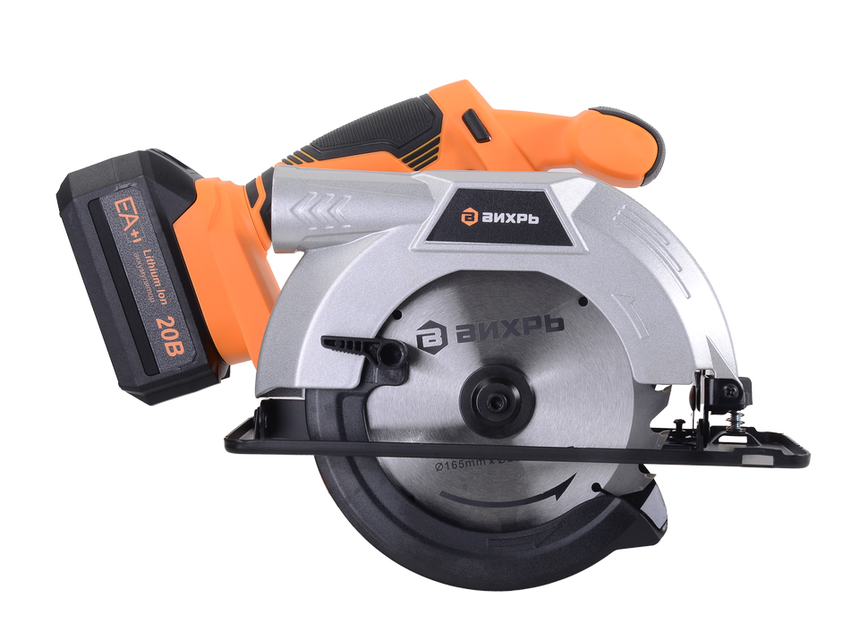 Дисковая пила аккумуляторная АДП-165/20Li Вихрь предназначена для выполнения продольных и поперечных прямых резов, резов под углом в древесине и древесно-стружечных плитах (кроме асбестосодержащих).