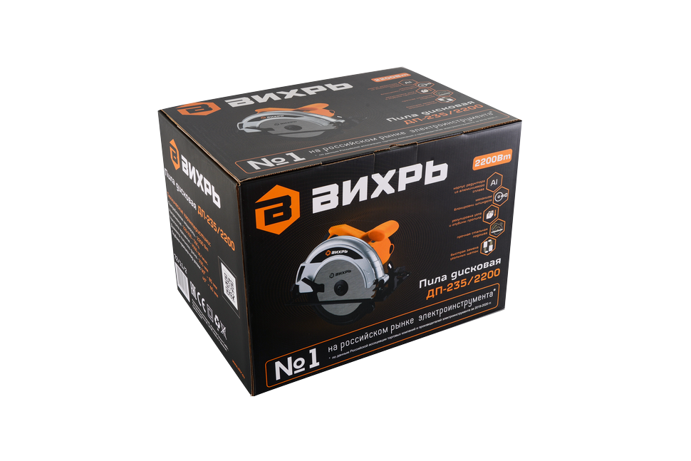 Модель дисковой пилы модели Вихрь ДП-235/2200 является самой мощной в серии и широко используется для резки древесины. При наличии специальных дисков с помощью этой модели можно быстро и с высоким качеством производить раскрой ламината, ДСП, фанеры и других листовых материалов. Инструмент оснащён электродвигателем номинальной мощностью 2.2кВт, обеспечивающим частоту вращения 4500об/мин и внушительную глубину пиления, которая составляет: под углами 90° – 85мм, 45° – 60мм. Диаметр посадочного отверстия под диск – 30мм. Максимальный диаметр самого диска – 235мм.