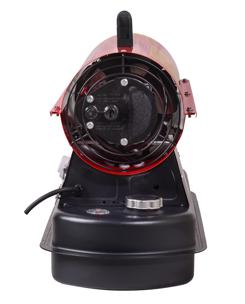 В бак объемом 12 л можно заливать дизтопливо или керосин. При максимальном расходе дизеля 0,83 кг/ч тепловая пушка выдает мощность 10 кВт. Режим работы, интенсивность нагрева и расход топлива регулируются механическим термостатом. Он автоматически поддерживает температуру окружающей среды на заданном уровне.