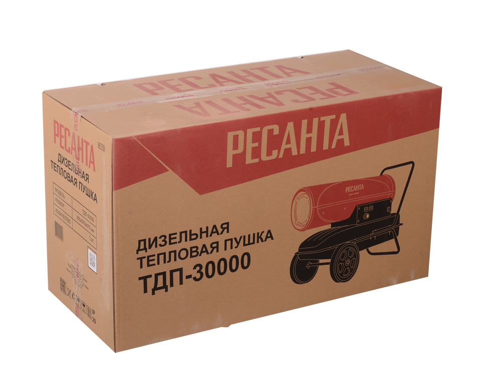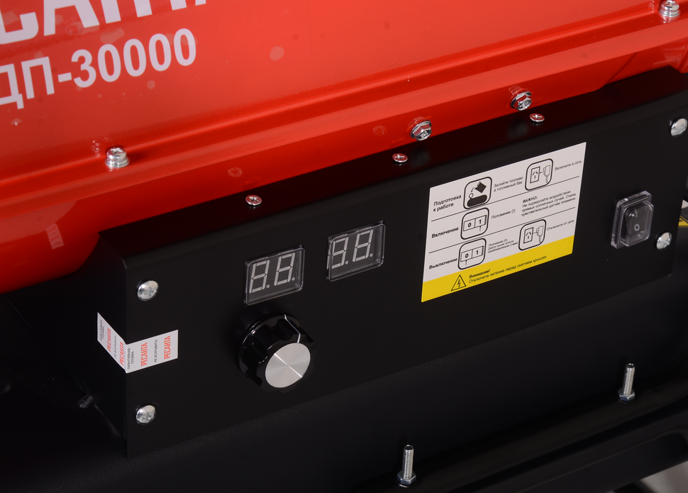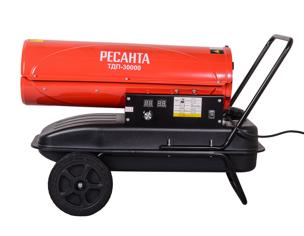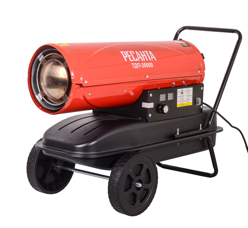 Тепловая пушка Ресанта ТДП-30000 поможет быстро обогреть гараж, складское или любое другое нежилое помещение. Мобильность устройства позволяет перемещать ее по объекту.