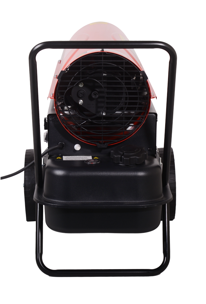 Дизельная тепловая пушка данной модели обладает средними показателями мощности и производительности. Нагрев происходит прямым методом. То есть воздух напрямую, без теплообменника, греется пламенем. Такую теплопушку можно применять только в хорошо проветриваемом помещении.