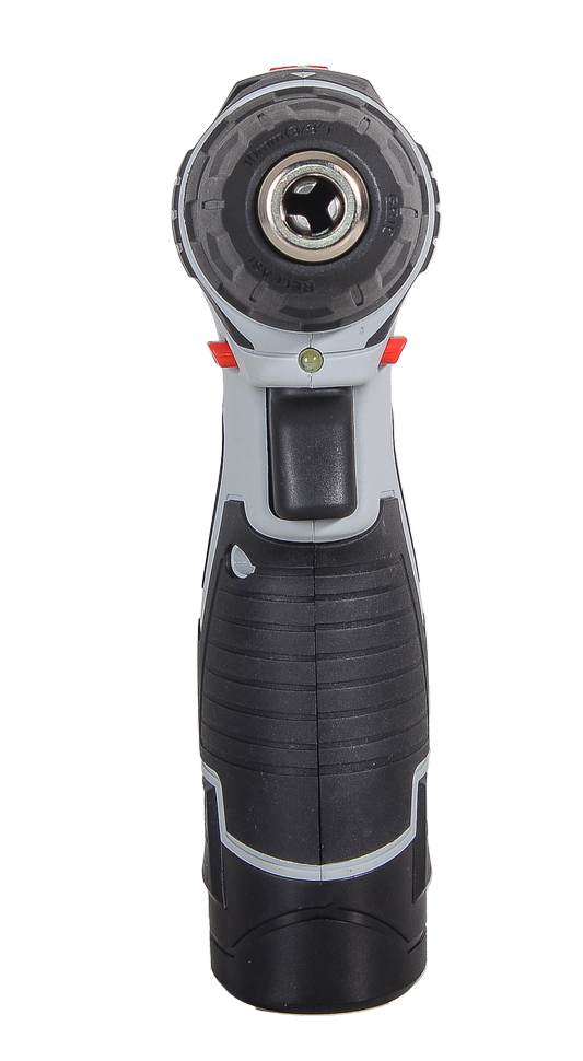 Устройство оснащено компактным литий-ионным аккумулятором емкостью 2 Ач, который можно зарядить в течение 1 часа. В зависимости от типа материала можно устанавливать частоту вращения до 400 или 1400 об/мин. Наличие режима реверса упрощает процесс выкручивания метизов и изъятия сверла в случае застревания. Конструкция дрели-шуруповерта тщательно продумана для удобства использования. Быстрозажимной патрон диаметром 0,8-10 мм позволяет оперативно и без дополнительных усилий менять сверла. Прорезиненная рукоятка и расположенная рядом клавиша пуска облегчают процесс работы. Блокировка шпинделя исключает риск случайного включения устройства. Наличие подсветки обеспечивает хорошую видимость в темноте.