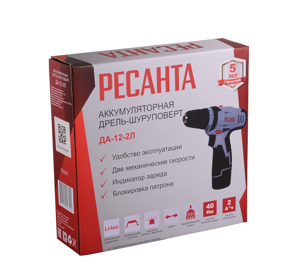 Аккумуляторная дрель-шуруповерт Ресанта ДА-12-2Л будет полезна при необходимости сверления отверстий разного диаметра в деревянных, металлических, пластиковых поверхностях.