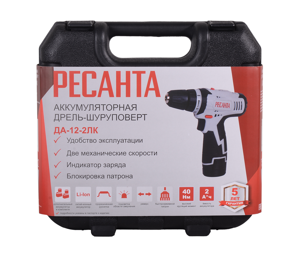 Дрель-шуруповерт Ресанта ДА-12-2ЛК отличается удобством в использовании благодаря прорезиненной рукоятке. Подсветка рабочей зоны обеспечивает точность выполняемых работ при слабом освещении. Самая базовая по мощности модель имеет компактные размеры и малый вес 0,96 кг. Помимо зарядного устройства и набора из 6 бит в комплектацию входит адаптер-удлинитель для бит, позволяющий использовать инструмент в труднодоступных местах. Прочный пластиковый кейс предназначен для безопасного хранения и транспортировки.