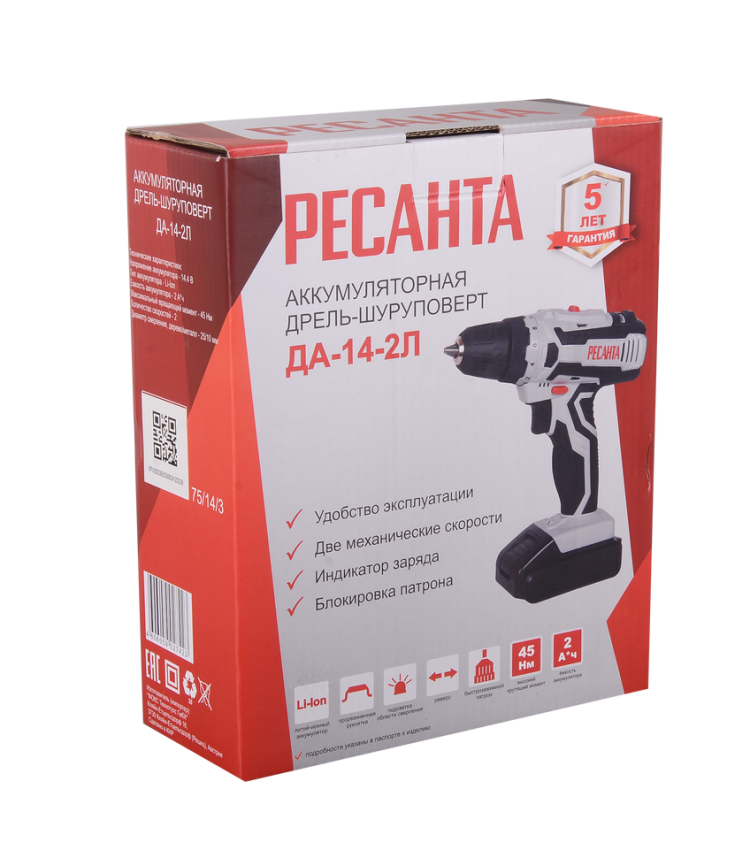 Дрель-шуруповерт аккумуляторная Ресанта ДА-14-2Л