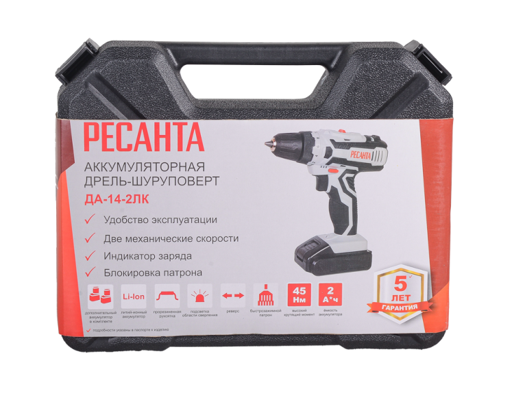 Дрель-шуруповерт аккумуляторная Ресанта ДА-14-2ЛК