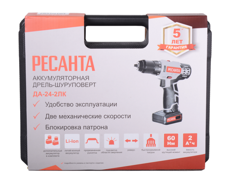 Дрель-шуруповерт аккумуляторная Ресанта ДА-24-2ЛК