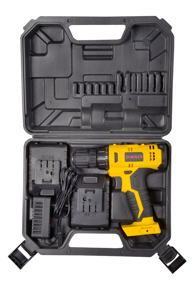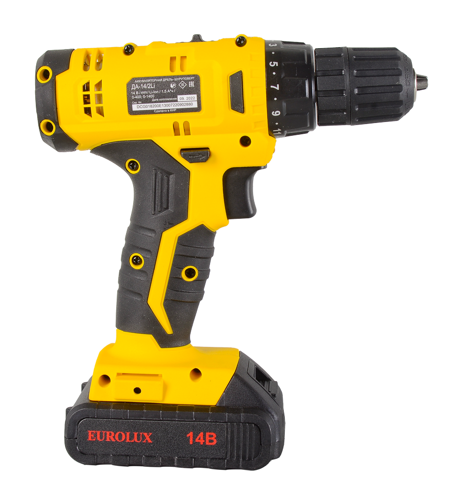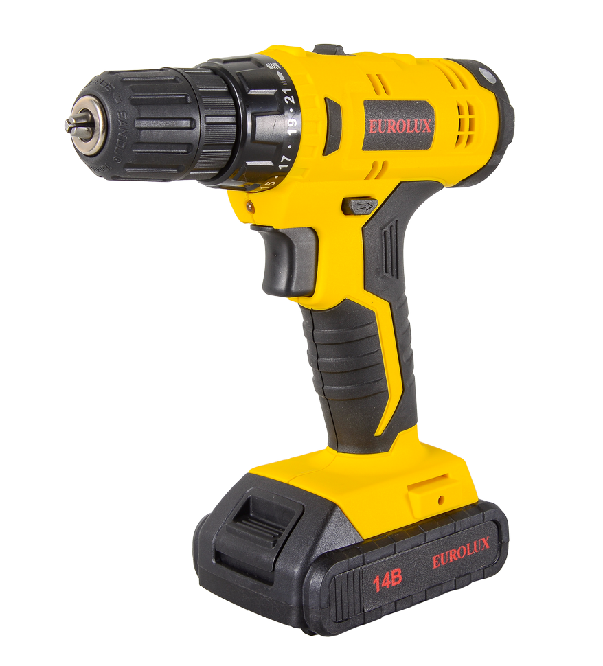 Дрель-шуруповерт со съёмным аккумулятором модели EUROLUX ДА-14/2Li – удобный и практичный инструмент для сверления отверстий в металле, пластике и древесине, сборки мебели и вкручивания шурупов. Это универсальный агрегат, который работает без провода для подключения к сети. Электрическая дрель имеет съёмный источник питания, это литий-ионная аккумуляторная батарея емкостью 1,5 Ач, которая полностью заряжается за 1 час. Пока аккумулятор заряжен, можно выполнять строительные работы без привязки к определённому месту.