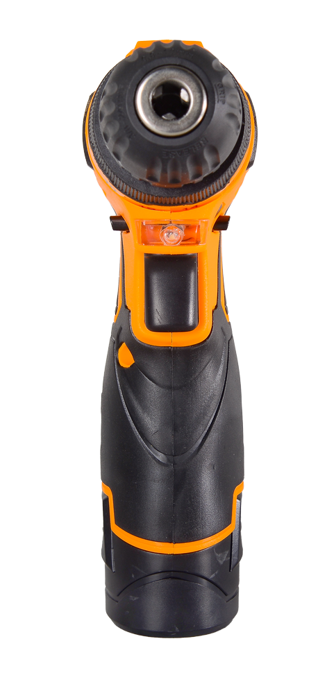 Дрель-шуруповерт весит 0,96 кг, корпус снабжен противоскользящими накладками. Рукоятка и расположение клавиш выполнены с учетом эргономики для комфорта удержания инструмента в руке. Аккумулятор 12 В встроен в ручку, по способу установки относится к типу обойма. Он полностью заряжается за 60 мин. Li-Ion батареи хорошо держат зарядку, не обладают «эффектом памяти» и не склонны к саморазряду.