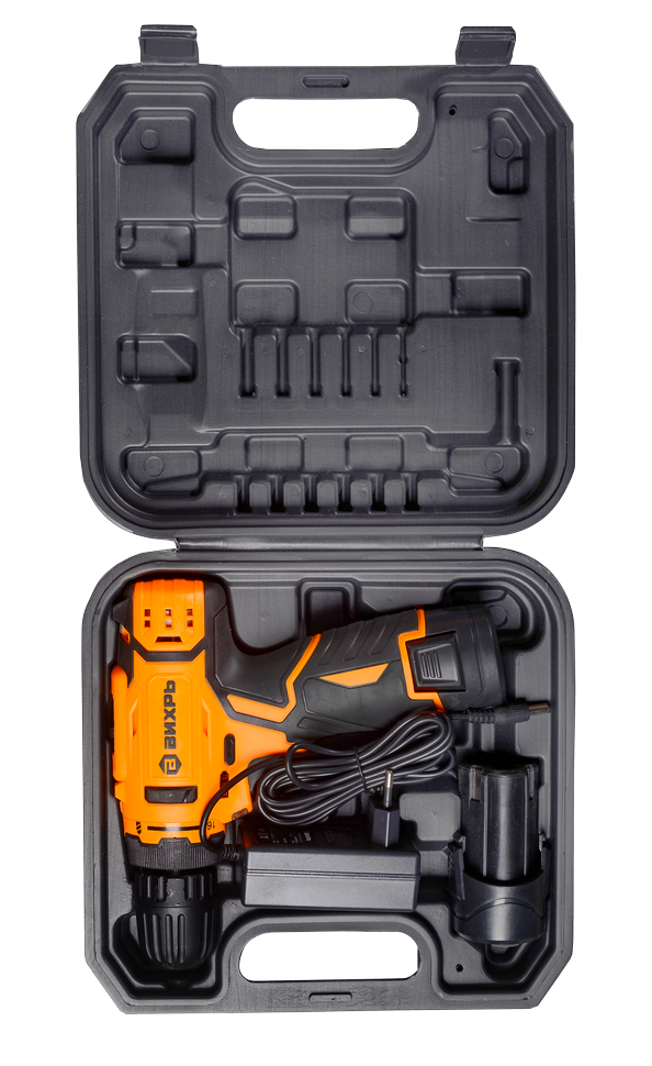 Дрель-шуруповерт ВИХРЬ ДА-12Л-2КА является базовой моделью с литий-ионным аккумулятором. Обеспечивает свободу передвижения при решении простых бытовых задач. Две сменные аккумуляторные батареи емкостью 1,5 А*ч позволяют работать без перерыва на перезарядку. Ручной инструмент поставляется в пластиковом кейсе с запасной батареей и зарядным устройством. Комплект дополнен набором из 6 бит с адаптером-удлинителем.