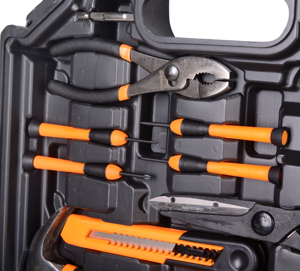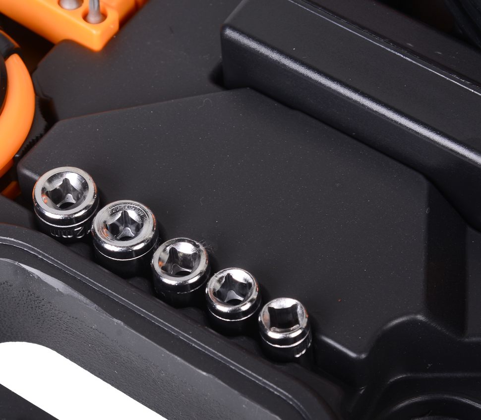 Модель оснащена щеточным мотором, который приводится в движение за счет литий-ионного аккумулятора после разблокировки и нажатия клавиши пуска. Устройство может работать на 2 скоростях, что позволяет легко справляться со сверлением отверстий в дереве, металле и пластике, закручиванием крепежных элементов. Наличие реверсного движения облегчает процесс выкручивания винтов и шурупов, выемки сверла в случае застревания. Биту можно быстро заменить другой благодаря быстрозажимной конструкции патрона. Дрель-шуруповерт поставляется в специальном кейсе. В комплект входит все необходимое для проведения различных действий: набор бит, шестигранников, шестигранных головок, рулетка, отвертки, молоток-гвоздодер, ножницы, строительный нож, плоскогубцы, метизы.