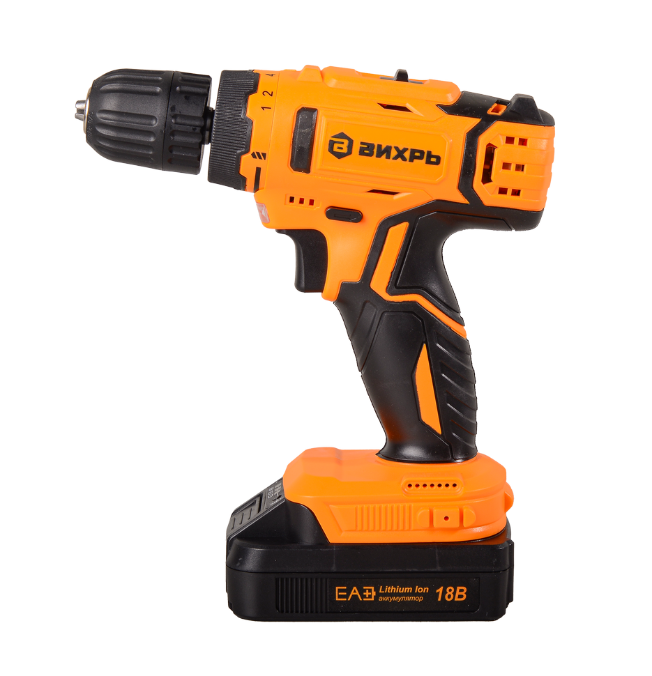 Дрель-шуруповерт ВИХРЬ ДА-18Л-2К упростит работы по сверлению отверстий и вкручиванию крепежа.