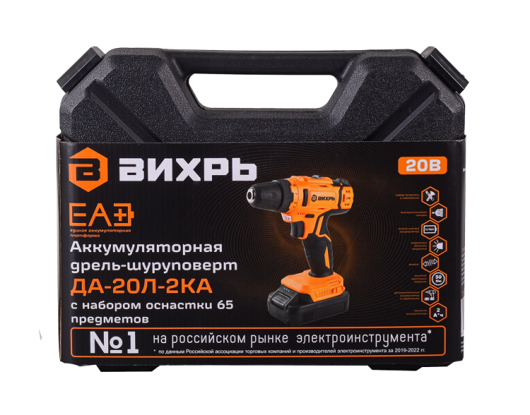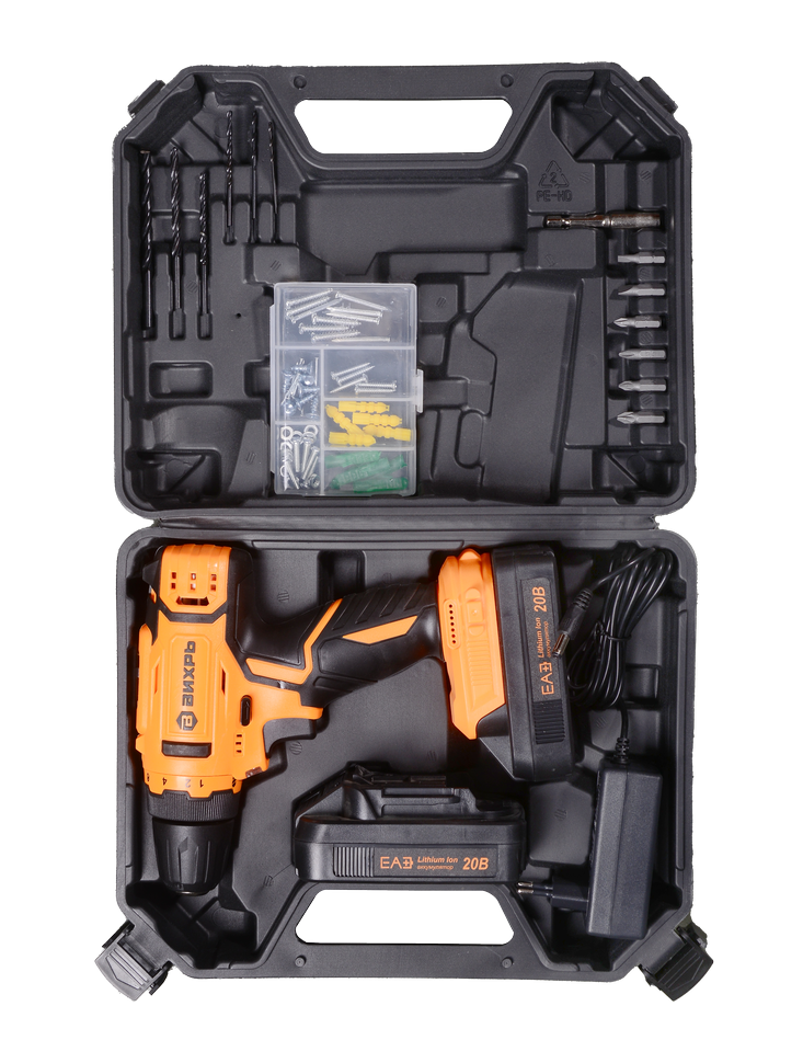 Дрель-шуруповерт Вихрь ДА-20Л-2КА с набором оснастки 65 предметов