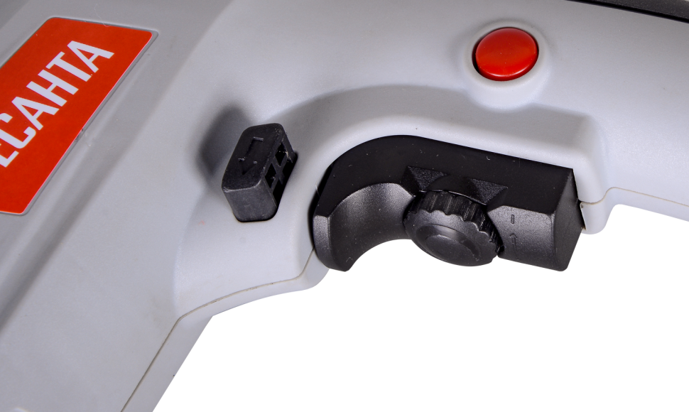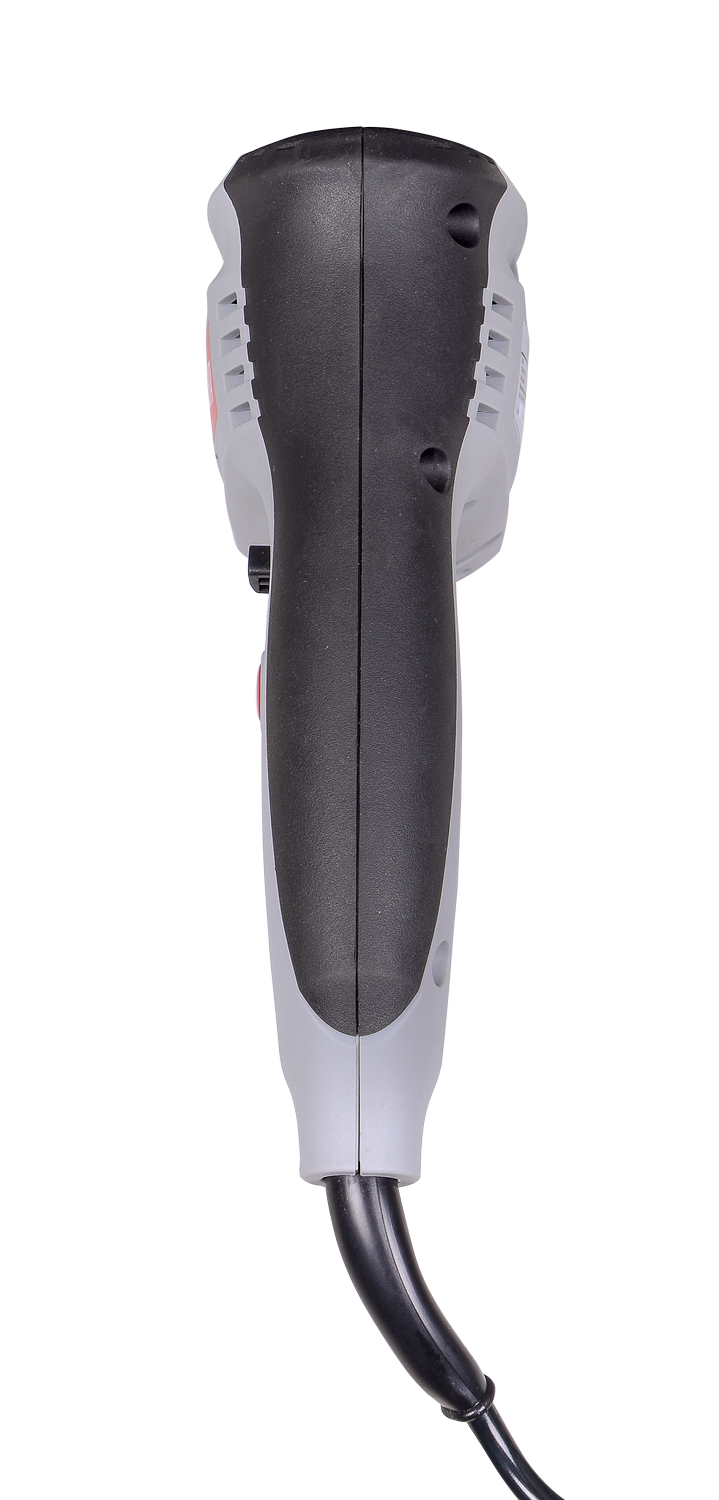 Пластиковый корпус оснащен двумя рукоятками: на основной ручке эргономичной формы расположен выключатель, дополнительная ручка с упором с нижней части покрыта мягкой накладкой.