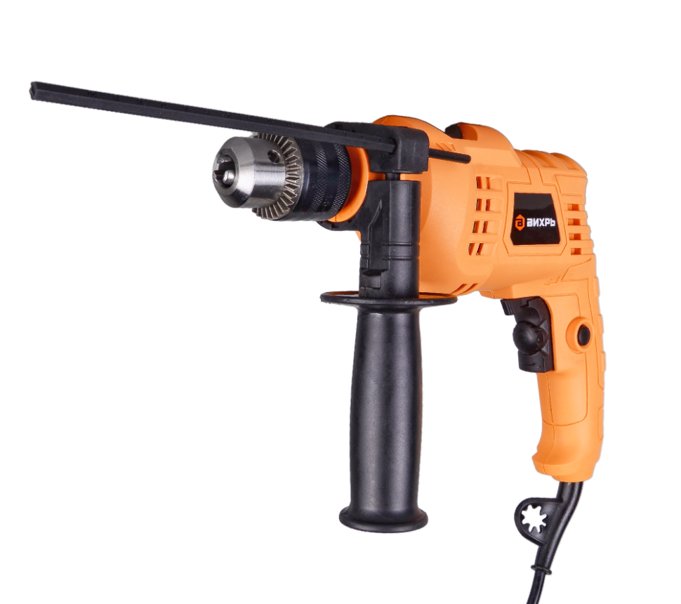 Модель электродрели Вихрь ДУ-550 оснащена реверсом, что обеспечивает вращение по и против часовой стрелке для закручивания и откручивания метизов, также помогает изъять застрявшее сверло без его повреждения. Диаметр патрона 1,5-13 мм позволяет выбирать сверла различного диаметра. Максимальный диаметр сверления стали - 10 мм, бетона - 13 мм, дерево - 25 мм.