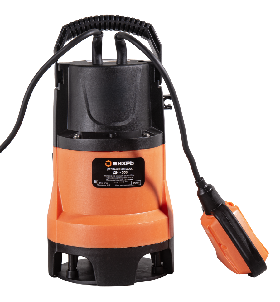 Дренажный насос Вихрь ДН-550 поможет откачать воду с примесями из реки, котлована, шахты. Используют устройство также при затоплении подвалов домов. Особенно это актуально в период весеннего половодья. Для полноценной работы насоса в жидкости должно быть минимум волокнистых включений, а твердые частицы – не более 35 мм.