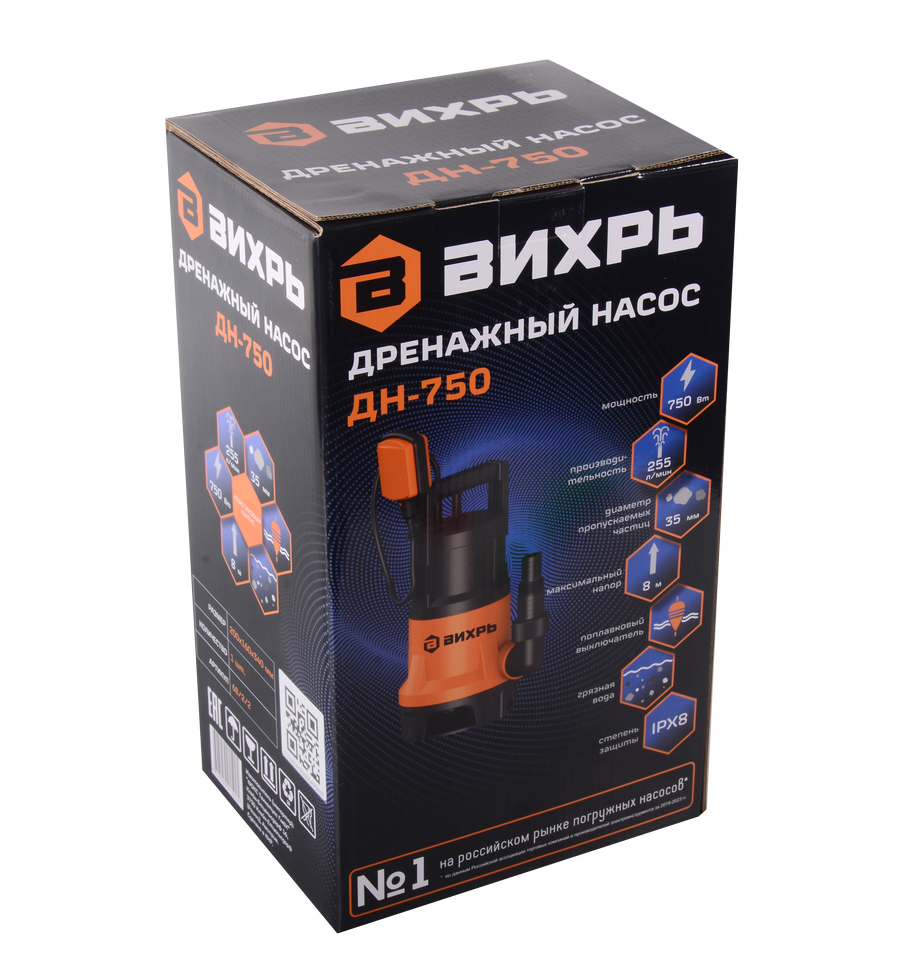 Вихрь ДН-750 — это дренажный насос мощностью 750 Вт для перекачки загрязненной воды из естественных водоемов, оросительных каналов и дренажных колодцев, затопленных жилых помещений и подвалов. Допустимый размер пропускаемых механических частиц - до 35 мм. Использование в воде с более крупными включениями изнашивает рабочие части насоса и может привести к заклиниванию рабочего колеса.